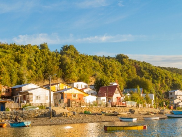 As you drive from Angelmó toward Chinquihue, the road runs right alongside the water, offering open views of the Tenglo Channel and colourful boats in the harbour. This stretch is scenic, with fishermen mending nets, stacks of shellfish awaiting sale, and small wooden houses clustered along the shore.