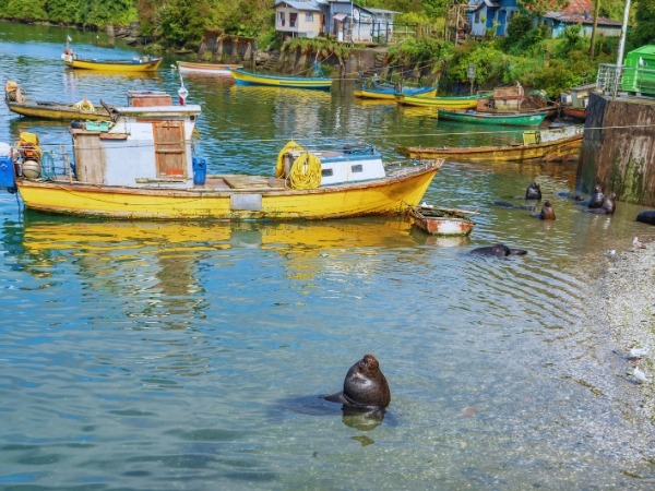 For a truly unique adventure, consider a day trip to Chiloé Island, an enchanting world of folklore, wooden architecture, and wildlife just off the coast of Puerto Montt. To get there, you’ll drive about 60 kilometres south to Pargua before boarding a ferry for the 30-minute crossing of the Chacao Channel. Keep your eyes peeled during the journey: it’s common to spot sea lions and dolphins swimming alongside the boat, and during the summer migration season, you might even catch sight of whales in the distance.